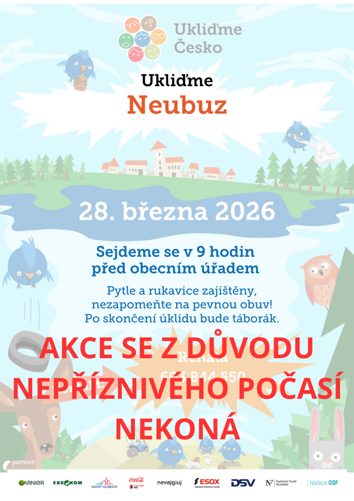 Akce UKLIĎME NEUBUZ se z důvodu nepřiznivého počasí neuskuteční.