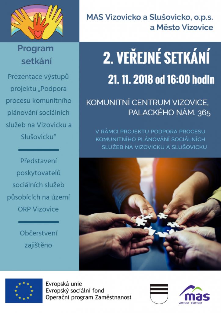 Druhé veřejné setkání v rámci Komunitního plánu sociálních služeb se koná ve středu 21.11.2018 v 16 hod. v Komunitním centru ve Vizovicích.