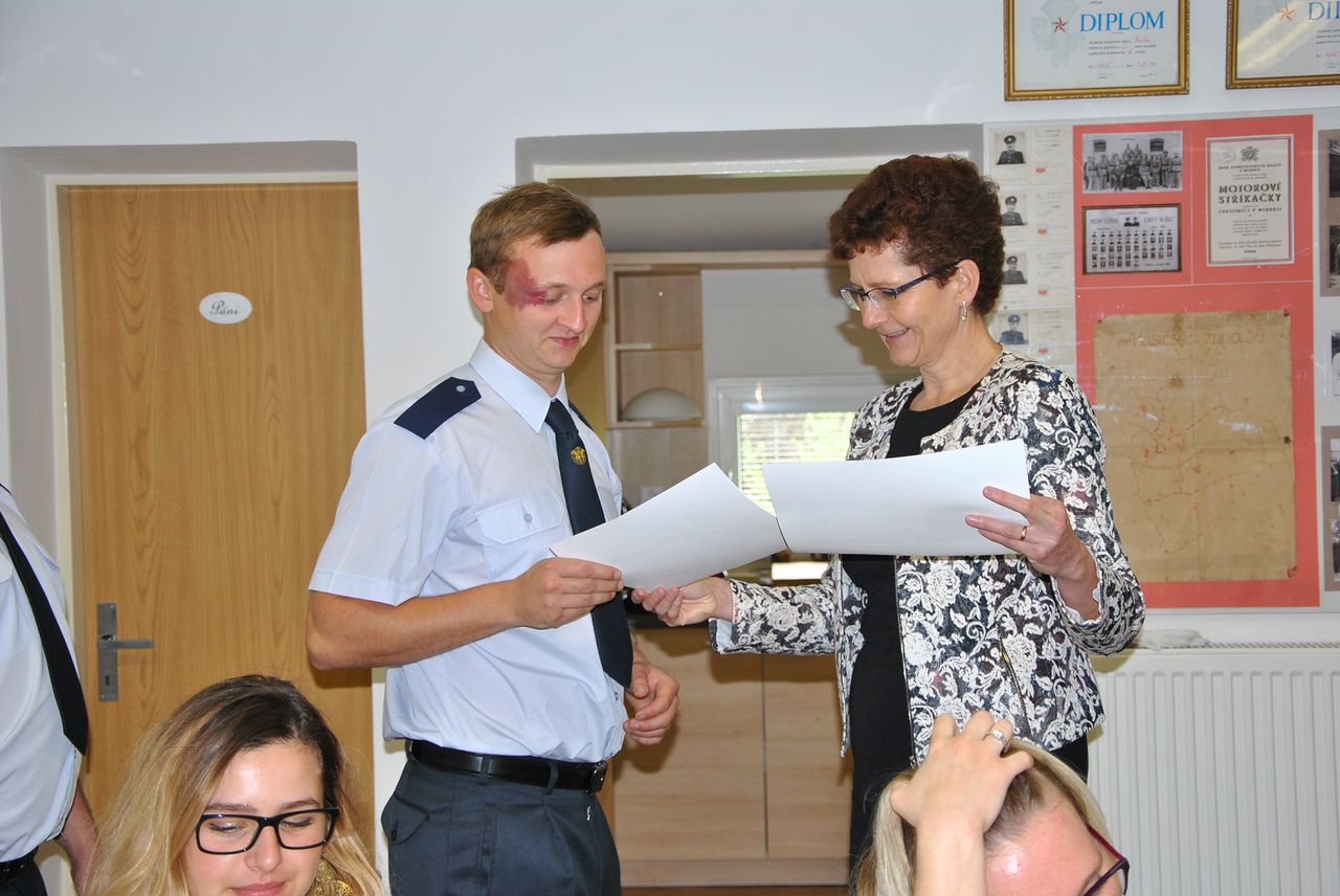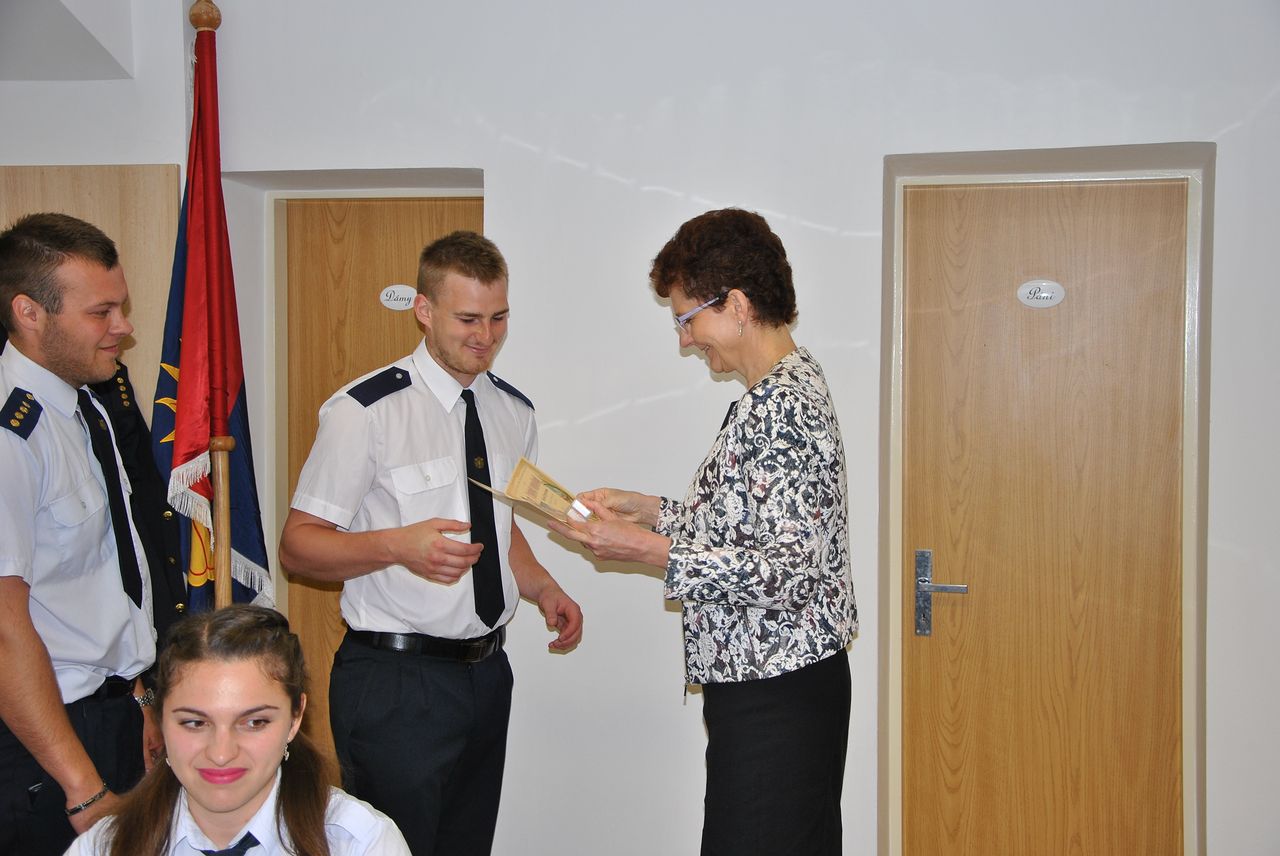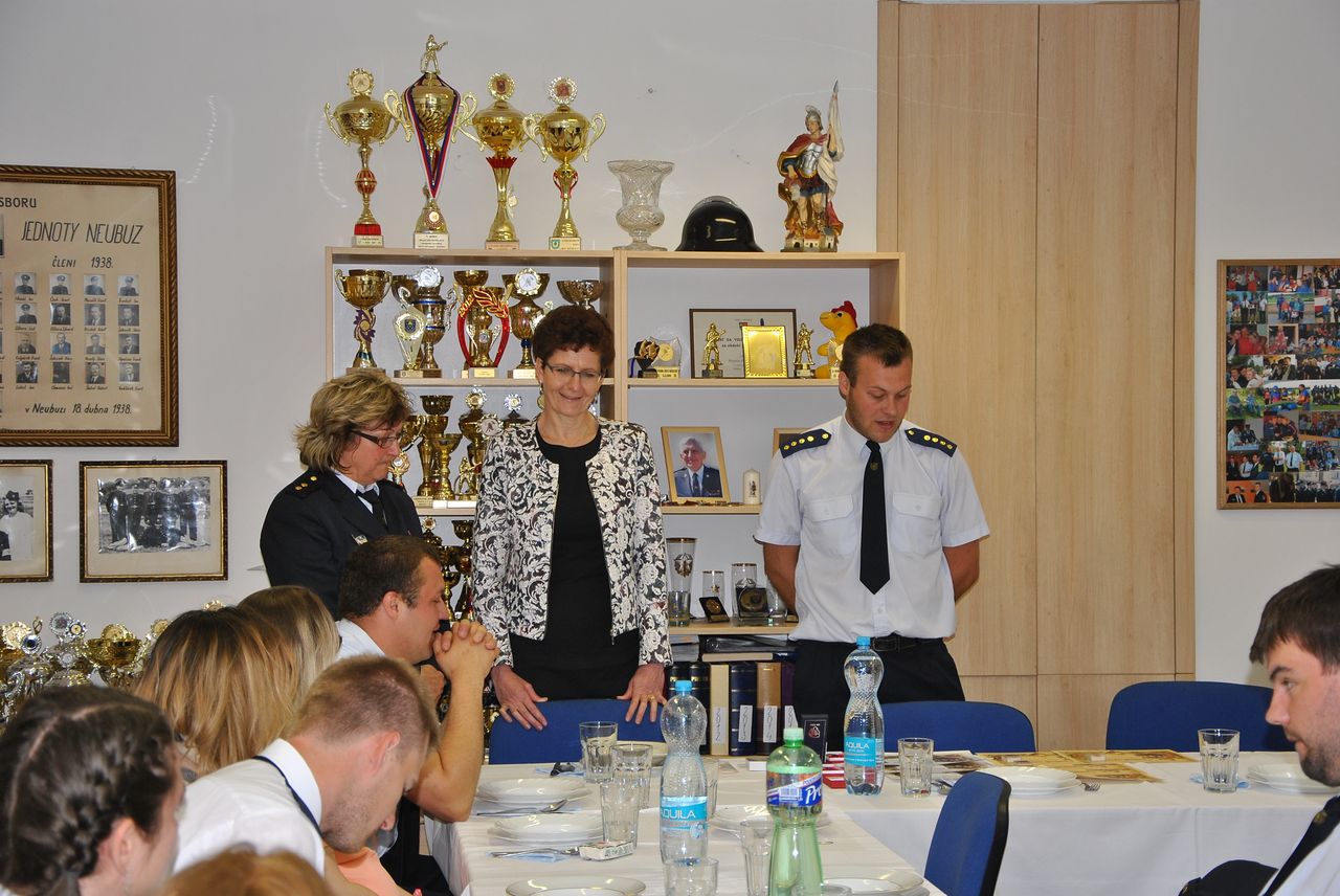 Starostka obce předala ocenění vyznamenaným hasičům při slavnostním obědě v hasičské klubovně.